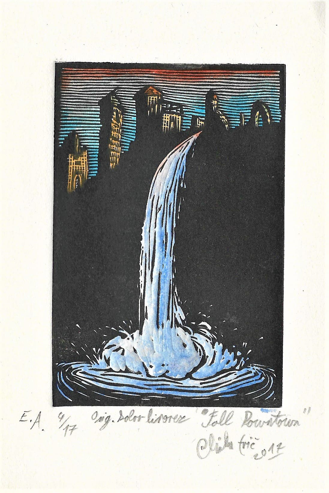Fall Downtown, ročno barvani linorez 2017